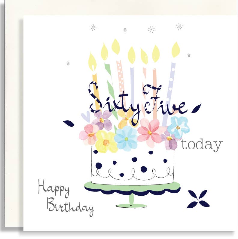 65 Birthday Watercolour Floral Cake Glitter Card L43