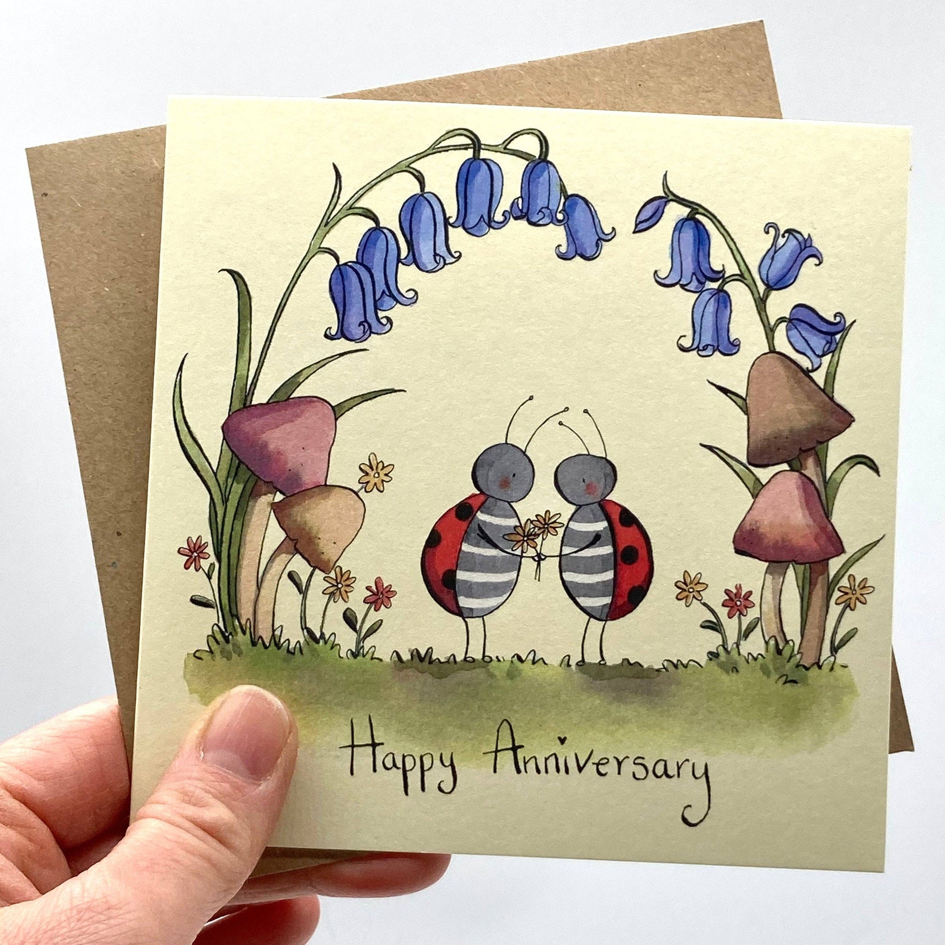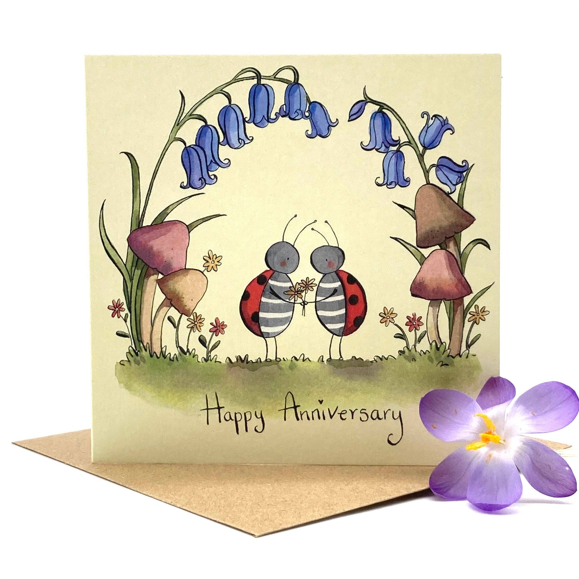 Anniversary Card. This cute illustration of two little ladybirds is the perfect card to send for an anniversary.