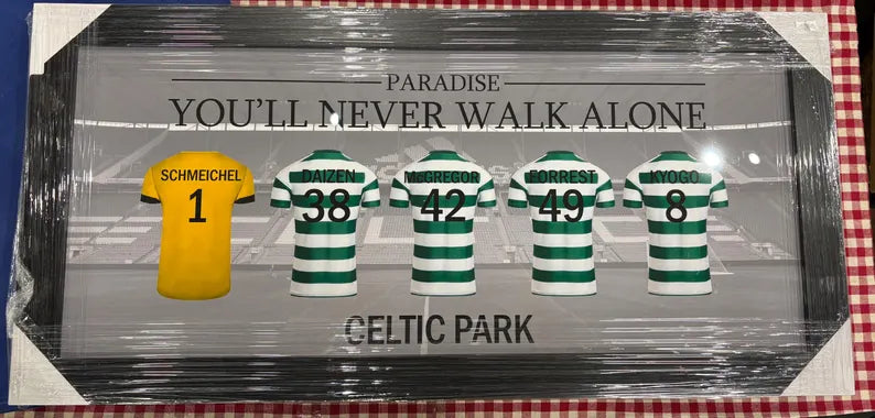 "Display your passion for Celtic FC with this Celtic Park Wall Art. Featuring the iconic "You'll Never Walk Alone" chant, this piece will inspire and energize any fan. Show your unwavering support for the team with this unique and powerful addition to your home decor."