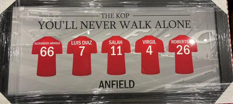Bring the spirit of Liverpool FC into your home with this stunning Anfield wall art. Featuring the iconic "You'll Never Walk Alone" print, this piece will inspire and motivate you everyday. Show your passion for the club and display your love for the game with this must-have addition to any fan's collection.