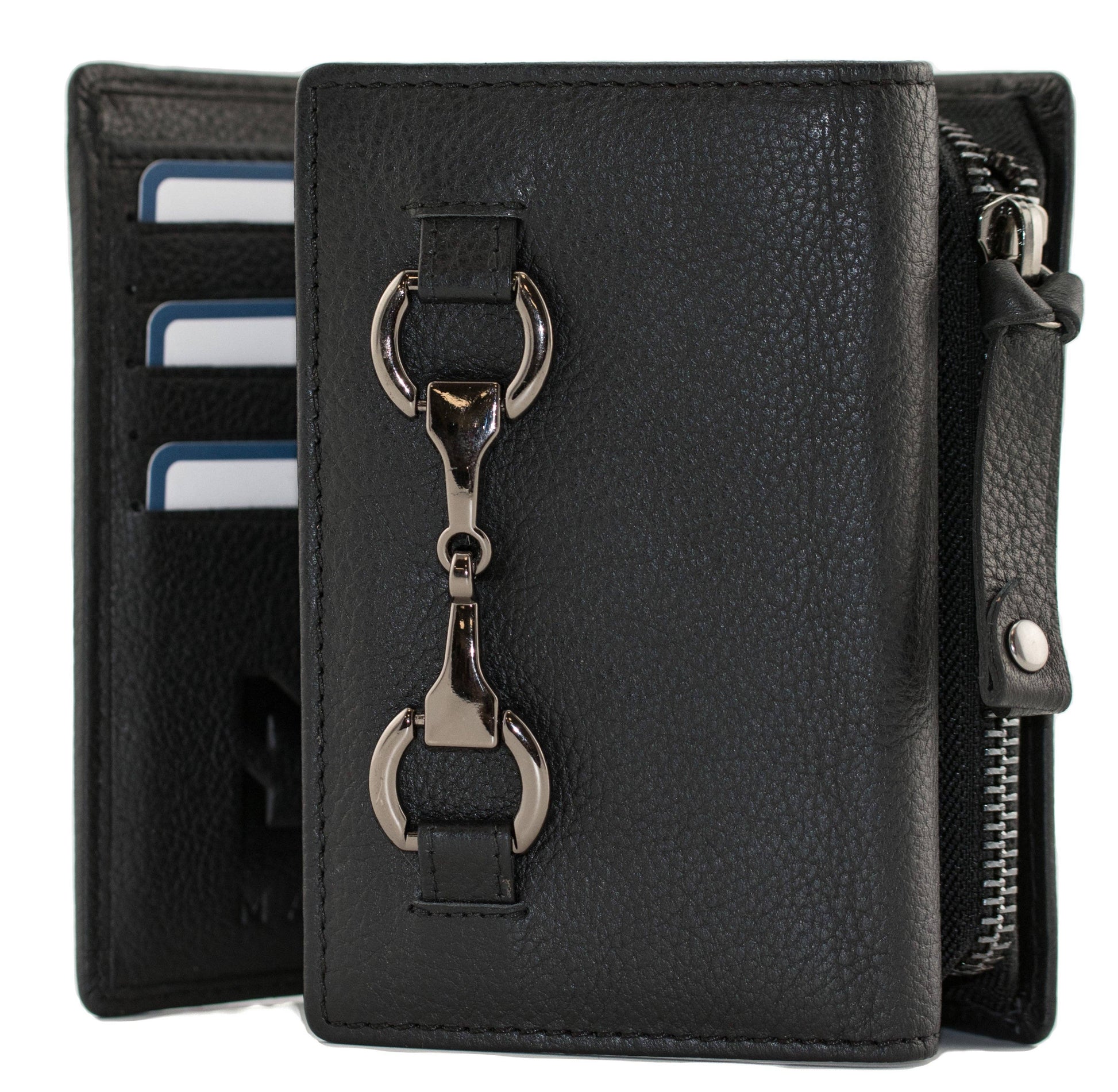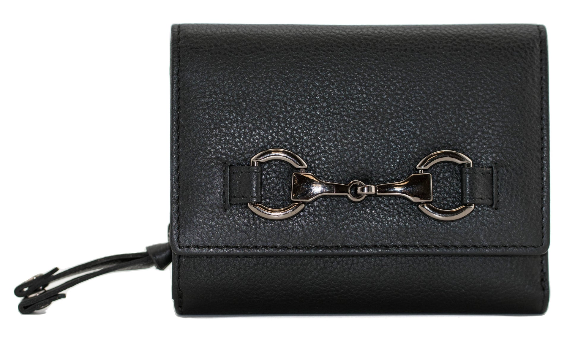 This functional tri fold purse has been created from beautiful soft leather and has an equestrian themed fitting.